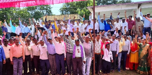 छत्तीसगढ़ में तीज पर्व होने के बावजूद महिला कर्मचारी बड़ी संख्या में हड़ताल में सम्मिलित होने लगे हैं। सोमवार को सरकार से फेडरेशन से प्रथम वार्ता सार्थक बताया गया है। अब सरकार से घोषणा के इंतजार है लेकिन जब तक मांग पूरी नही करेगी हड़ताल अनवरत जारी रहेगी। आज आंदोलन में जे एल भुआर्य,एस के चटर्जी,चन्द्रहास कुलदीप,सीमा जायसवाल,राजेन्द्र हरदेल,अनामिका मंडावी,भुनेश्वर साहू,अजित तिवारी,सोहन लाल कोषमा सहित सैकड़ों हडताली उपस्थित थे।