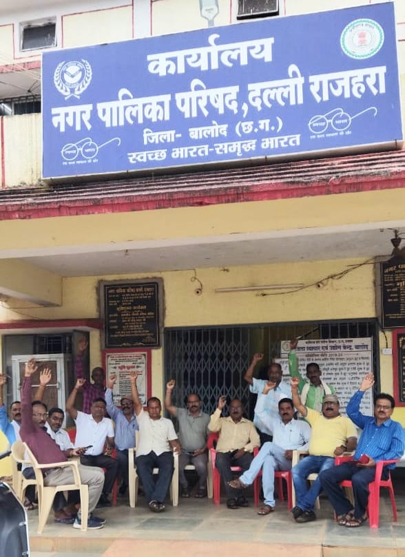 दल्ली राजहरा: छत्तीसगढ़ कर्मचारी अधिकारी फेडरेशन के आव्हान पर दिनांक 22अगस्त 2022से 2सितंबर 2022 तक (12 दिवस) नगरीय निकाय विभाग के कर्मचारीयों द्वारा भी हड़ताल पर रहे । इस दौरान समस्त गणमान्य नागरिकों, मिडिया प्रभारियों द्वारा सहयोग किया जिसका हम सभी कर्मचारीगण आभारी हैं ।
