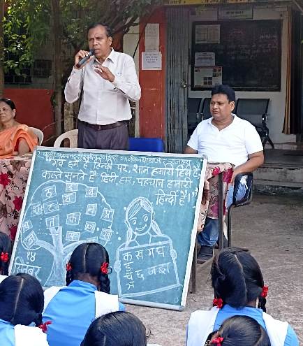 दल्लीराजहरा – शास. स्वामी आत्मानंद उत्कृष्ट हिन्दी माध्यम विद्यालय नया बाजार, राजहरा में दिनांक 14.09.2022 को “हिन्दी दिवस मनाया गया । सर्वप्रथम माँ शारदे की पूजा अर्चना व माँ सरस्वती वंदना से कार्यक्रम में शाला के छात्र -छात्राओं के द्वारा गीत , कविता व भाषण प्रस्तुत किये गये। तत्पश्चात् वियालय के वरिष्ट शिक्षकों के द्वारा भी हिन्दी भाषा का इतिहास उसकी महंता, हिन्दी का समृध्द , साहित्य पर अपने अपने विचार व्यक्त किया । संस्था प्रमुख टी.आर. रानाडोजी कारा भी हिन्दी व्याकरण, हिन्दी के प्रमुख कवियों के दोहे जो कि आज भी प्रासंगिक है , इस पर अपने उद्गार व्यक्त किये । कार्यक्रम के मुरव्य आथिति अजय छाजेड़ भी शाला प्रबंधन एवं विकास समिति अध्यक्ष ‘ ने भी संक्षिप्त में हिन्दी भाषा के महत्व पर प्रकाश डाला । छात्रा देवकी मण्डावी 11 वी (कला) व कु. भावना राणा (12 वी वाणिज्य) ने भी सुंदर व मधुर कविता के माध्यम से सभी विद्यार्थियों को हिन्दी भाषा की विशालता से अवगत कराया । कार्यक्रम का संचालन श्रीमतीश्रीमती शैली सिहं व्या.(राजनितिक) तथा आभार प्रदर्शन ए. ध्रुव स.सी.शि., ने किया।