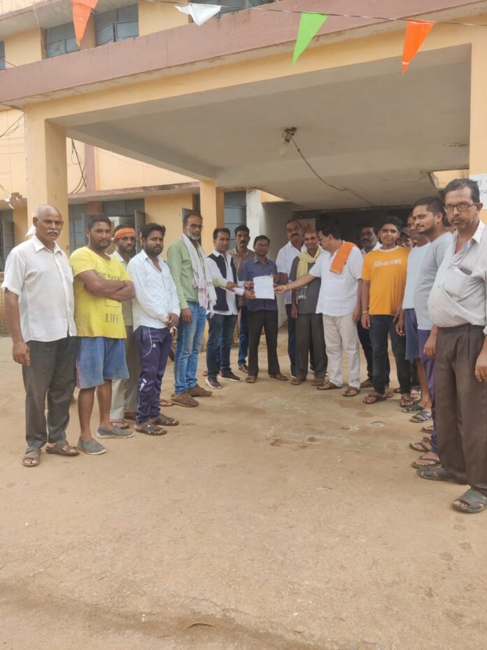 दल्ली राजहरा/डौंडी दिनांक 17/09/2022 जिला अध्यक्ष अनुसूचित जन जाती मोर्चा व सांसद प्रतिनिधि विक्रम धुर्वे के नेतृत्व में मुख्यमंत्री जी के नाम अनुविभागीय अधिकारी दल्ली राजहरा कार्यलय पहुचकर नायाब तहसीलदार चोरक सर को ज्ञापन सौपा गया नगर पालिका परिषद् दल्लीराजहरा एवं नगर पंचायत चिखलाकसा में गोधन न्याय योजना के तहत छोटे पशुपालको से ही गोबर क्रय कम मात्रा में किया जा रहा है ।