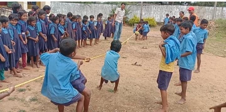 भानपुरी विकास खंड बस्तर के सोरगांव संकुल के अंतर्गत संचालित प्राथमिक शाला सोरगांव में शासन के निर्देशानुसार प्रत्येक शनिवार को बस्ता विहीन शिक्षा का आयोजन के तहत इस शनिवार विभिन्न प्रकार के खेल गतिविधि का आयोजन किया गया जिसमे रस्सा खींच प्रतियोगिता में बच्चों ने उत्साह और आनंद लेकर भाग लिए। निर्णायक के रूप में स्वयं प्रभारी शिक्षक धनेश्वर ध्रुव व आश्रम की शिक्षिका जसिंता इक्का व धर्मेंद्र प्रधान रहे। संकुल के सीएसी डी डी पंत ने खेल के लिए रस्सा उपलब्ध कराए व बताए कि बच्चे इस तरह के खेल व अन्य सह शैक्षिक गतिविधि कराए जाने से गुमसुम व संकोची प्रवृति का बच्चा भी मुखर हो जाता है और बच्चों का आत्म विश्वास बढ़ जाता है। शाला त्यागी होने की प्रवृति में कमी आता है।