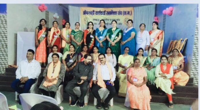 दल्लीराजहरा- अखिल भारतीय आंगनबाड़ी कर्मचारी महासंघ नई दिल्ली व भारतीय मजदूर संघ से संबद्ध आंगनबाड़ी कार्यकर्ता सहायिका संघ छत्तीसगढ़ का एक दिवसीय त्रैवार्षिक प्रादेशिक अधिवेशन बैकुंठपुर में संपन्न हुआ, जिसमें प्रदेशभर के सभी संभागो से आई प्रमुख प्रतिनिधि बहनों ने राज्य सरकार पर वादा खिलाफी का आरोप लगाते हुये कहा कि चुनाव पूर्व आंगनबाड़ी कार्यकर्ताओं को न्यूनतम देने के संकल्प की घोषणा करने वाली वर्तमान राज्य सरकार आंगनबाड़ी कार्यकर्ताओं से किये गये इस वायदे को भुल गई है, जिससे अब आंगनबाड़ी कर्मचारियों के समक्ष निर्णायक आंदोलन करने के अलावा और कोई रास्ता नहीं बचा।