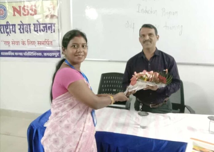 जगदलपुर राष्ट्रीय सेवा योजना के अंतर्गत धरमु माहरा शासकीय कन्या पॉलिटेक्निक धरमपुरा में इंडक्शन प्रोग्राम के तहत प्राचार्य डॉ. पीयूष लोटीया, एसओएस विभाग के वरिष्ठ व्याख्याता संजय त्रिवेदी, अरूणेश आत्मपुज्य, संतोष कुमार, ईशान साहु तथा समस्त स्टाफ की उपस्थिति में राष्ट्रीय सेवा योजना के अंतर्गत नव प्रवेशित छात्राओं को एनएसएस प्रभारी श्रीमती सुषमा देवागंन के द्वारा राष्ट्रीय सेवा योजना के बारे में विस्तृत जानकारी दी गई । साथ ही छत्राओं को राष्ट्रीय सेवा योजना की पुस्तिका का वितरण किया गया । इस कार्यक्रम में छात्राओं के लिए आत्मरक्षा विषय पर परिचर्चा का आयोजन किया गया था ।