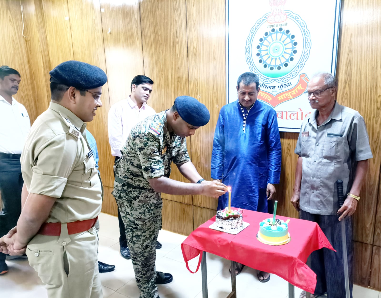 दिनांक 31.10.2022 को सहायक उप निरीक्षक नन्दलाल चौरसिया व प्रधान आरक्षक पुणेन्द्र कुमार साहू जी सेवानिवृत्त हुए जिन्हे पुलिस कार्यालय बालोद में Farewell Function आयोजित कर विदाई दी गई। विदाई समारोह में उपस्थित श्रीमान पुलिस अधीक्षक महोदय जितेंद्र कुमार यादव, अति. पुलिस अधीक्षक हरीश राठौर, डीएसपी सुश्री नवनीत कौर, रक्षित निरीक्षक मधुसूदन सिंह नाग, व समस्त ऑफिस स्टाफ के द्वारा रिटायर हुए स.ऊ.नि नन्दलाल चौरसिया प्र.आर. पुणेन्द्र साहू के नई पारी की शुरुआत हेतू केक कटिंग सेलिब्रेशन के साथ उज्ज्वल भविष्य की कामना करते हुए उन्हें श्री फल व स्मृति चिन्ह भेंट कर ससम्मान विदाई दी गई।