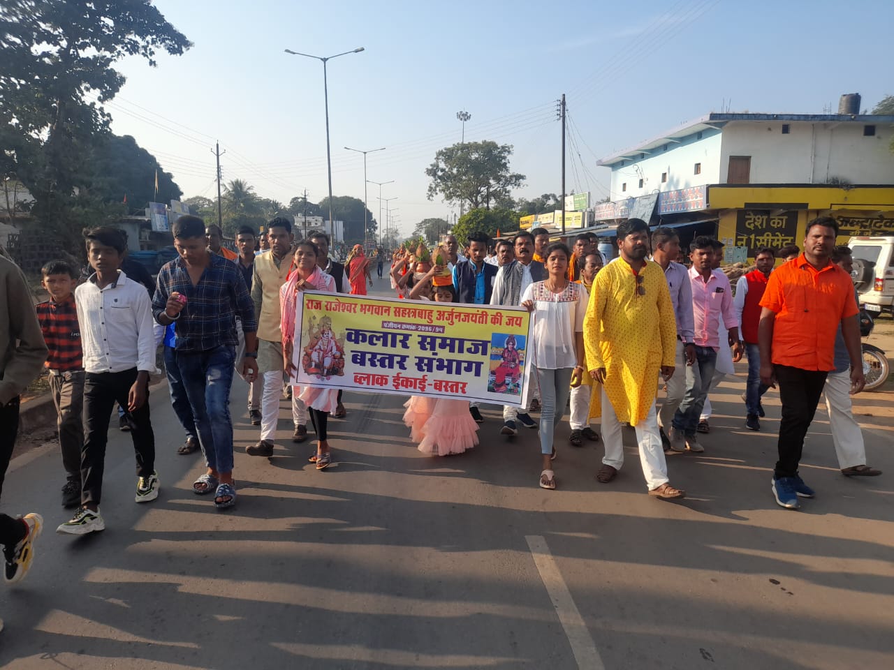 सरपंच करन्दोला संतोष बघेल सहित समाज के पदाधिकारी मौजूद रहे सर्वप्रथम भगवान सहस्त्रबाहु अर्जुन के छाया चित्र पर दीप प्रज्वलित कर कार्यक्रम का शुभारंभ किया गया समाज के इष्ट देव भगवान सहस्त्रबाहु अर्जुन की जयंती धूमधाम से मनाई गई समाज के युवती व महिलाओं द्वारा भव्य कलश शोभायात्रा निकाली गई। कलार समाज के लोगों ने लिया बढ़-चढ़कर हिस्सा।