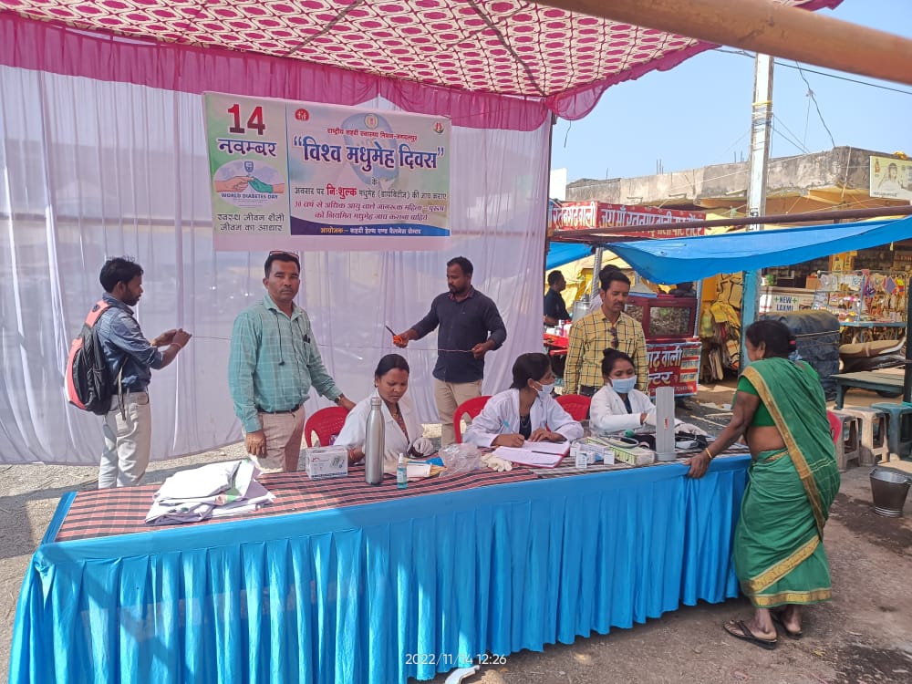 दिनाक 14.11.2022 मुख्य चिकित्सा एवं स्वास्थ्य अधिकारी जगदलपुर के निर्देशानुसार विश्व मधुमेह दिवस के उपलक्ष मैं जगदलपुर शहर के विभिन्न स्थानों पर कैंप लगाकर लोगों का बीपी शुगर की जांच की गई जगदलपुर शहर में लगभग 675 लोगों का बीपी जांच किया गया जिसमें से 95 संभावित मरीज पाए गए एवं 675 लोगों की शुगर जांच की गई जिसमें से 96 संभावित फ्रिज पाए गए सभी संभावित मरीजों को प्राथमिक स्वास्थ्य केंद्र जांच एवं उपचार हेतु स्वास्थ्य केंद्र जाने की सलाह दी कि साथ ही साथ स्वस्थ जीवन शैली के बारे में जागरूक किया गया आने वाले दिनों में स्वास्थ विभाग की ओर से 30 वर्ष से अधिक उम्र के सभी लोगों का बीपी शुगर की जांच की जानी है इस हेतु सी.पी.एम के द्वारा आज नगर निगम सभागार में महापौर व समस्त वार्ड पार्षदों को इसकी जानकारी दी गई साथ ही साथ निगम कार्यालय में बीपी शुगर की जांच की व्यवस्था की गई थी नगर निगम कार्यालय में 171 लोगों की स्क्रीनिंग की गई।