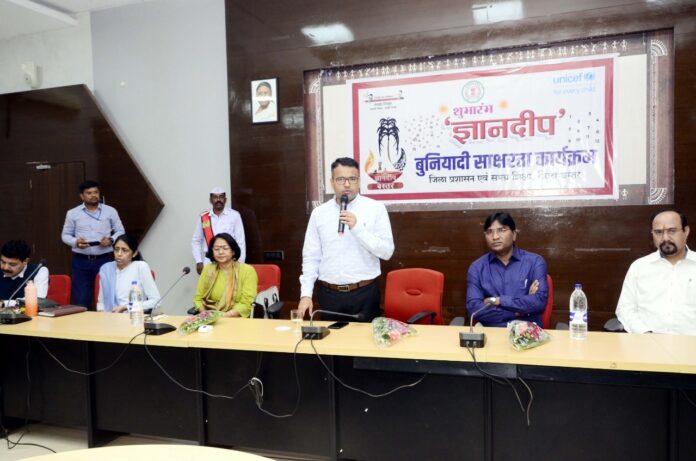 जिला कार्यालय के प्रेरणा कक्ष में आयोजित शुभारंभ कार्यक्रम के अवसर पर कलेक्टर चंदन कुमार, जिला पंचायत के मुख्य कार्यपालन अधिकारी प्रकाश सर्वे, यूनिसेफ की शिक्षाविद छाया कुंवर, जिला शिक्षा अधिकारी भारती प्रधान, जिला मिशन समन्वयक अखिलेश मिश्रा, डाइट के प्राचार्य सुभाष श्रीवास्तव, समग्र शिक्षा प्रभारी राजेश त्यागी सहित शिक्षा विभाग के विकासखंड और संकुल स्तरीय अधिकारी उपस्थित थे। कलेक्टर चंदन कुमार ने इस अवसर पर कहा कि छोटे बच्चों के सीखने की अधिक क्षमता को देखते हुए उन्हें अधिक से अधिक ज्ञान दिया जाना चाहिए। उन्होंने भाषा के ज्ञान पर जोर देते हुए कहा कि, जिन बच्चों को भाषा का अच्छा ज्ञान होता है, वे ही भौतिक एवं गणित जैसे विषयों में रुचि ले पाते हैं। उन्होंने कहा कि बच्चों की शिक्षा का आधार प्राथमिक शिक्षा है। यह जितनी मजबूत होगी, बच्चे के ज्ञान का स्तर उतना ही अधिक मजबूत होगा। बच्चे को छः वर्ष की उम्र में न केवल पढ़ना आना चाहिए, बल्कि वह जो पढ़ता है, उसे भी समझ में भी आना चाहिए।ज्ञानदीप कार्यक्रम के माध्यम से बच्चों की समझदारी को बढ़ाने का कार्य किया जाएगा तथा इसके लिए शिक्षकों को मार्गदर्शन और प्रशिक्षण दिया जाएगा।