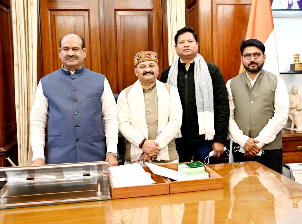 जगदलपुर – छत्तीसगढ़ राज्य की 12 जनजातियों को अनुसूचित जनजाति सूची मे शामिल करने के लिए प्रधानमंत्री नरेंद्र मोदी का समस्त आदिवासी समाज की ओर से आभार व्यक्त एवं धन्यवाद देने बस्तर प्रभारी संतोष पांडेय, पूर्व मंत्री महेश गागड़ा एवं पूर्व युवा आयोग सदस्य संग्राम सिंह राणा लोक सभा अध्यक्ष ओम बिड़ला से संसद भवन मे गुरुवार को सौजन्य भेट किये।