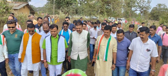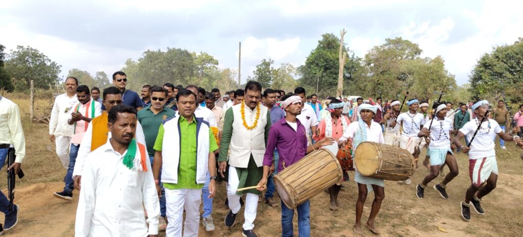 आरंभ में ग्रामीणों ने अतिथियों का पारंपारिक वाद्य यंत्रों के वादन और धुरवा नृत्य के बीच भव्य स्वागत किया।