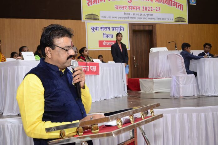 स्कूली बच्चों ने युवा संसद प्रतियोगिता में संसदीय कार्यवाही का संचालन करते हुए जनकल्याण के मुद्दों पर चर्चा की, विभिन्न कानूनों को पारित किया। भारत सरकार के संसदीय कार्य मंत्रालय के निर्देश पर यह प्रतियोगिता आयोजित की गई। प्रतियोगिता में प्रथम स्थान दंतेवाड़ा, द्वितीय स्थान बस्तर और तीसरा स्थान बीजापुर जिले ने प्राप्त किया। अतिथियों ने प्रतिभागियों को सम्मानित किया।