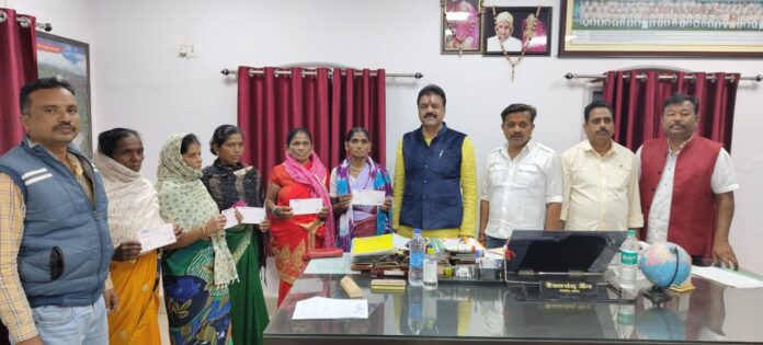 जगदलपुर स्वेच्छानुदान मद से ग्रामीण क्षेत्र की महिलाओं को आर्थिक संबल प्रदान करने के लिए प्रदान की आर्थिक सहायत प्रदेश के यशस्वी मुख्यमंत्री भूपेश बघेल जी आबकारी एवं उधोग मंत्री कवासी लखमा जी नगरीय प्रशासन मंत्री शिव डहरिया जी के स्वेच्छानुदान मद से ग्रामीण क्षेत्र माड़पाल की श्रीमती रायमती , माड़पाल की श्रीमती बिमला माड़पाल की श्रीमती मुक्ता ग्राम पंचायत कलचा की श्रीमती महादेई ग्राम माड़पाल की श्रीमती नीला को पांच पांच हजार रुपए की आर्थिक सहायता प्रदान की गई