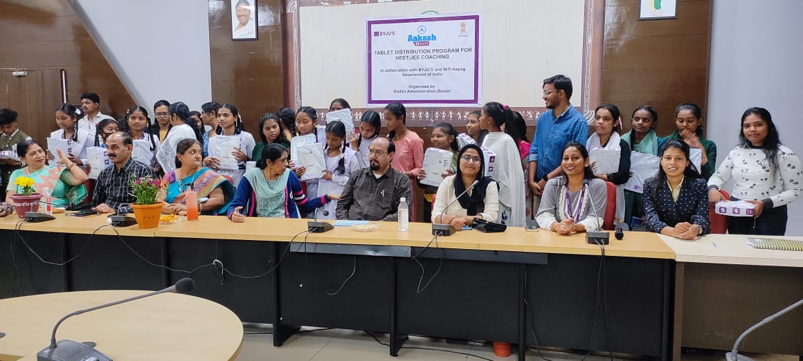 जगदलपुर बस्तर जिले के 40 मेधावी बच्चों को नीट और जेईई की परीक्षाओं की तैयारी के लिए टेबलेट का वितरण किया गया। परीक्षा के माध्यम से मेधावी बच्चों के चयन के उपरांत शनिवार को जिला कार्यालय के प्रेरणा कक्ष में आयोजित कार्यक्रम में बस्तर जिला प्रशासन, नीति आयोग, बाइजुस और आकाश द्वारा यह टेबलेट प्रदान किया गया। वितरण कार्यक्रम में जिला शिक्षा अधिकारी श्रीमती भारती प्रधान, जिला मिशन समन्वयक अखिलेश मिश्रा, सहायक परियोजना समन्वयक अशोक पांडे, आरफा वेलफेयर फाउंडेशन की महफूजा हुसैन, बायजुस की जिला फैलो प्रभज्योत कंबो उपस्थित थीं।