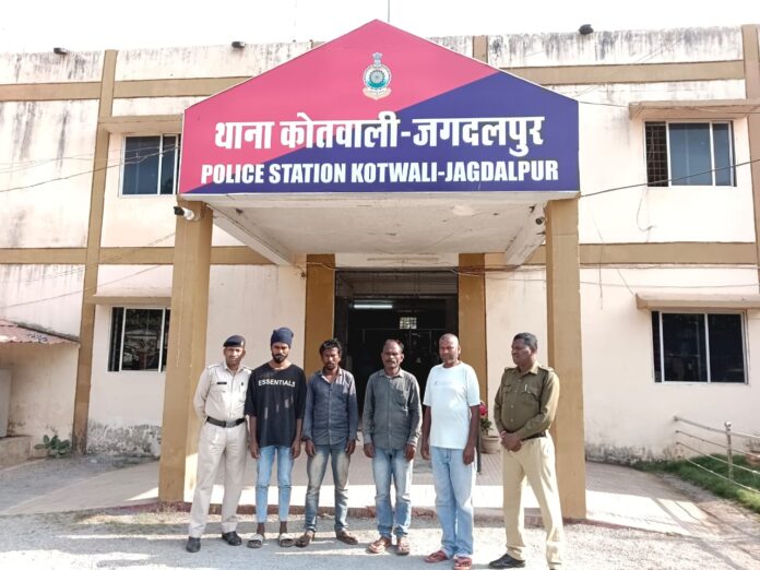 थाना कोतवाली जगदलपुर में मारपीट एवं आर्म्स एक्ट,आबकारी एक्ट के मामलों में विगत कई वर्षो से लगातार फरार चल रहे स्थायी वारंटी को पता तलाश कर, गिरफ्तार किया गया। जो माननीय मुख्य न्यायिक मजिस्ट्रेट जगदलपुर के 1.प्रकरण क्रमांक-481/22, अपराध क्रमांक-54/2020 धारा 294,323,506,34 भादवि0 2.प्रकरण क्रमांक-1245/2019 अप0क्र0-161/19 धारा 34-ए आबकारी एक्ट 3. प्र0क्र0-1734/21 अपराध क्रमांक 66/30 धारा 294,323,506 4. प्र0क्र0-500/19, अप0क्र0 130/19 धारा 294,323,506 34 भादवि0 के प्रकरणों में जारी स्थायी वारंटी जितेन्द्र निषाद, अमित सिंह एवं लखमू नाग, जयसंग नाग जो घटना कारित कर लगातार फरार थे। जिसका पता तलाश दौरान मुखबीर सूचना के आधार पर वरिष्ठ अधिकारियों के निर्देशन में वारंटी की गिरफ्तारी हेतु तुरंत टीम रवाना किया गया। जहाॅ पर टीम द्वारा वारंटियों को पता तलाश कर पकड़ा गया। जिसे गिरफ्तार कर, माननीय न्यायालय में विधिवत् पेश किया जा रहा है। इसके अतिरिक्त 2 स्थाई वारंटी जेल में निरूद्ध होने से जेल से जानकारी प्राप्त कर उनका भी वारंट का तामिली कराया गया।महत्वपूर्ण भूमिका अदा करने वाले पुलिस अधिकारीः- निरीक्षक एमन साहू प्रआर0 – नकुल कश्यप आरक्षक- प्रकाश नायक, युवराज सिंह ठाकुर, रवि सरदार, एवं मआर0 सुनीता सिंह, ललिता तारम।