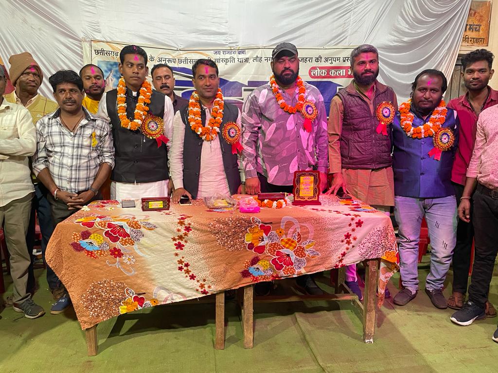 दल्लीराजहरा प्रगतिशील नवयुवक सांस्कृतिक कल्याणमंच वार्ड नंबर 15 नियोगी नगर दल्लीराजहरा के तत्वधान में गणतंत्र दिवस व मंडई के अवसर पर छत्तीसगढ लोककला के अनुरूप छत्तीसगढ़ की संस्कृति यात्रा, लौह नगरी दल्लीराजहरा की अनुपम प्रस्तुति लोककला मंच डेरा द्वारा कार्यकर्म प्रस्तुत किया गया। इस रात्रि कालीन कार्यकर्म के मुख्य अतिथि विक्रम धुर्वे (सांसद प्रतिनिधि व जिला अध्यक्ष भाजपा अनुसूचित जनजाति मोर्चा बालोद) विशेष अतिथि के रूप में हितेश डोंगरे(प्रदेश कार्यसमिति सदस्य भाजपा अनुसूचित जनजाति मोर्चा),विशाल मोटवानी(प्रदेश कार्यसमिति सदस्य भाजपा किसान मोर्चा), अब्दूल इब्राहिम सैयद (उपाध्यक्ष नगर पंचायत चिखलाकसा),माया मेश्राम (पूर्व भाजपा महिला मोर्चा)सुमित जैन( भाजपा यूवा नेता), रूप लाल साहू, अशोक साहू, समिति के अध्यक्ष शिलेन्द्र सोनी, सचिव हरीश मसिया,उपाध्यक्ष रोहित कुमार, संचालक राम कुमार श्रीनिवास, पुनीत सेन,भगवान साहू व प्रगति शील नवयुवक के अभी सदस्य उपस्थित रहे। मुख्य अतिथि विक्रम ने सभी को गणतंत्र दिवस व मंडई की हार्दिक बधाई एवं शुभकामनाएं दी।