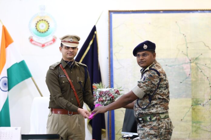 नारायणपुर दिनांक 30.01.2023 जिला नारायणपुर में नव पदस्थ पुलिस अधीक्षक पुष्कर शर्मा (भा.पु.से.) के द्वारा आज पुलिस अधीक्षक नारायणपुर के पद पर पदभार ग्रहण किया गया है। पुष्कर शर्मा ने आज पुलिस अधीक्षक नारायणपुर का पदभार निवर्तमान पुलिस अधीक्षक सदानंद कुमार(भा.पु.से.) से ग्रहण किया है। नव पदस्थ पुलिस अधीक्षक पुष्कर शर्मा, वर्ष 2018 बैच के आई.पी.एस. अधिकारी हैं,