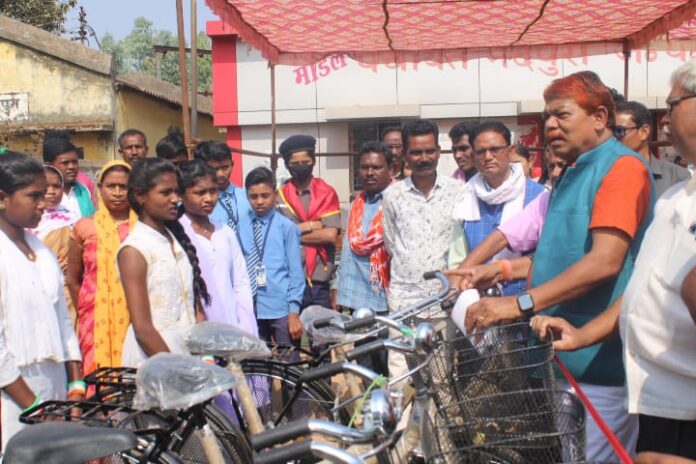 नंदपुरा मंगलवार को नारायणपुर विधायक एवं छत्तीसगढ़ हस्तशिल्प विकास बोर्ड के अध्यक्ष चंदन कश्यप ने नारायणपुर विधानसभा क्षेत्र के शासकीय हाई स्कूल नंदपुरा मे अध्ययनरत 20 बालिकाओं छत्तीसगढ़ सरकार की महत्वाकांक्षी योजना सरस्वती निःशुल्क साइकिल वितरण योजना अन्तर्गत साइकिल वितरण किया ।विधायक चंदन कश्यप स्कूली बच्चों को शिक्षा के मह्त्व को बताते हुए कहा कि शिक्षा एक ऐसा धन है जिसे ना तो कोई चुरा सकता है और ना ही कोई छीन सकता। यह एक मात्र ऐसा धन है जो बाँटने पर कम नहीं होता, बल्कि इसके विपरीत बांटने पर बढ़ता ही जाता है। हमने देखा होगा कि हमारे समाज में जो शिक्षित व्यक्ति होते हैं उनका एक अलग ही मान सम्मान होता है और लोग उन्हें हमारे समाज में इज्जत भी देते हैं। इसलिए हर व्यक्ति चाहता है कि वह एक साक्षर हो प्रशिक्षित हो इसीलिए आज के समय में हमारे जीवन में पढ़ाई का बहुत अधिक महत्व हो गया है। इसीलिए आपको यह याद रखना है कि शिक्षा हमारे लिए बहुत जरूरी है इसकी वजह से हमें हमारे समाज में सम्मान मिलता है जिससे हम समाज में सर उठा कर जी सकते हैं।विधायक ने आगे कहा कि हमारी सरकार शिक्षा के क्षेत्र मे बेहतरीन कार्य कर रहीं है। सभी को समान एवं गुणवत्तापूर्ण शिक्षा मिले इसके लिए प्रदेश सरकार प्रतिबध्द है। हमारी बेटियों को साइकिल मिलने से उन्हें स्कूल आवागमन मे किसी प्रकार की परेशानी नहीं होगी। बिना किसी कठिनाइयों के बालिकाएं भी अच्छा शिक्षा ग्रहण कर पाएंगे।कार्यक्रम मे सांसद प्रतिनिधि श्याम दिवान, विधायक प्रतिनिधि सालीक बघेल, वरिष्ठ कांग्रेसी अचल वाजपेयी, महेंद्र पांडे, उमेश जोशी, प्रेम पानिग्राही, विद्याधर पांडे, नंदपुरा सरपंच गोमती बघेल, प्राचार्य खेमलता देवांगन,नीलू कश्यप, रमेश बघेल,विद्याधर बघेल, रुखनाथ बघेल, विधायक सोशल मीडिया प्रतिनिधि भुवनेश्वर बघेल, विक्की कश्यप, फगनू बघेल,स्कूल स्टॉप सहित ग्रामीण एवं स्कूली बच्चे मौजूद थे।