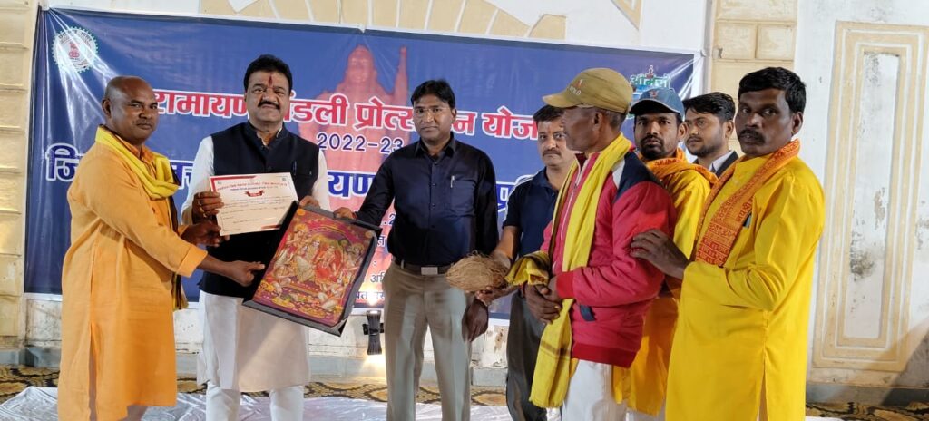रामायण मंडली प्रोत्साहन योजना 2022-23 के अन्तर्गत जिला स्तरीय रामायण मंडली प्रतियोगिता का आयोजन बुधवार को दलपत सागर के समीप स्थित बस्तर आर्ट गैलेरी में संसदीय संचिव एवं विधायक रेखचंद जैन की उपस्थिति में सम्पन्न हुआ। कार्यक्रम में जनपद पंचायत जगदलपुर (नगरीय निकाय) से सुर श्रृंगार सामाजिक समिति एवं सांस्कृतिक लोक कला समिति जगदलपुर, जनपद पंचायत बस्तर से शिवशक्ति मानस मंडली भानपुरी, जनपद पंचायत लोहण्डीगुड़ा से शिव मानस मंडली बड़ांजी, जनपद पंचायत तोकापाल से विहगंम भजन मंडली करंजी, जनपद पंचायत बकावण्ड से ओम शिव शक्ति मानस मंडली करीतगांव के मानसगान मंडलियां ने भाग ली, जिसमें सुर श्रृंगार सामाजिक एवं सांस्कृतिक लोक कला समिति जगदलपुर जिला स्तरीय प्रतियोगिता में प्रथम स्थान में रही।
