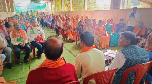 भारतीय जनता पार्टी बस्तर जिले के भानपुरी मंडल कार्यसमिति की बैठक आज चपका में सम्पन्न हुई । भाजपा कार्यसमिति की बैठक में कार्यकर्ताओं को संबोधित करते हुए भाजपा प्रदेश महामंत्री केदार कश्यप जी ने कहा कि सभी कार्यकर्ता एकजुट होकर मतदान केंद्रों पर अपनी पूरी ताकत झोंक दे । श्री कश्यप ने कहा कि आगामी 11 फरवरी को माननीय राष्ट्रीय अध्यक्ष जे पी नड्डा जी के जगदलपुर प्रवास को सफल बनाने के लिए हम सभी को प्रयास करना है । भाजपा जिला अध्यक्ष रूपसिंह मंडावी जी ने कहा कि सामने चुनाव है कांग्रेस के कुशासन के खिलाफ हम सभी भाजपा कार्यकर्ताओं को आवाज उठानी है ।भाजपा मंडल अध्यक्ष संतोष बघेल ने विगत कार्यक्रमों का वृत प्रस्तुत किया तथा बैठक को संबोधित करते हुए कहा कि भानपुरी मंडल का प्रत्येक कार्यकर्ता भाजपा के रीति नीति का पालन करते हुए पार्टी की विचारधारा पर चलने के लिए संकल्पित है । भाजपा मण्डल प्रभारी योगेन्द्र पांडे जी ने बैठक को संबोधित करते हुए कहा कि चुनाव में समय बहुत ही कम बचा है मण्डल का प्रत्येक कार्यकर्ता बूथ पर हर एक मतदाताओं सें संपर्क कर केन्द्र सरकार की योजनाओं, छ.ग. में भाजपा सरकार के कार्यकाल की उपलब्धियों तथा वर्तमान कांग्रेस की वादाखिलाफी एवं विफलताओं को बताए। बैठक को जिला पंचायत के पूर्व उपाध्यक्ष तरुण चोपड़ा ने भी संबोधित किया। बैठक संचालन महामंत्री प्रवीण सांखला ने किया। भाजपा मण्डल कार्यसमिति की बैठक में विजय तिवारी , दिलीप पाणिग्राही ,खीतेश मौर्य,अशोक राव , असगर खान , अशोक राव, भूषण गुप्ता, गणेश सेठिया, हरदेव बघेल ,भोला कश्यप,खुलेश्वर,फकीर कश्यप, लुदर सेठिया,दीपक गुप्ता,सुनील कश्यप,दयानीधि ठाकुर, राजू पांडे,भूवन साहू, भागीरथी, दिवाकर पांडे, राधाकृष्ण पानीग्राही, रामनारायण पांडे, नडगी पटेल,शशी भारती, महेश कश्यप, मुकेश दिवान,हरबंधु,लच्छीन,विद्या, महेंद्र पांडे,नीलकुमारी, रमेश बघेल, घनश्याम , रामप्रसाद मौर्य , तुलसू राम , ओमप्रकाश कश्यप सहित काफी संख्या में कार्यकर्ता उपस्थित थे ।