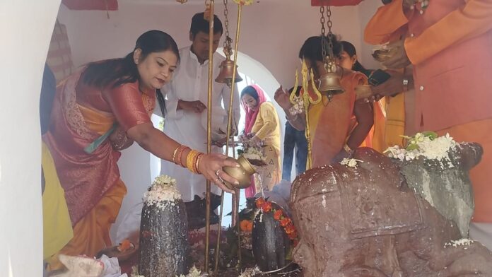जगदलपुर महाशिवरात्रि पर नगर निगम जगदलपुर की महापौर सफीरा साहू ने बोट के जरिए दलपत सागर स्थित भगवान भोलेनाथ के मंदिर में पहुंचकर पूजा अर्चना की। इस दौरान पार्षद योगेंद्र पांडे, ललिता राव, आयुक्त दिनेश कुमार नाग भी मेयर श्रीमती साहू के साथ उपस्थित थे। महापौर ने शहर के अन्य शिवालयों में भी जाकर शंकर भगवान की पूजा कर शहर व प्रदेश की खुशहाली व समृद्धि की कामना की।