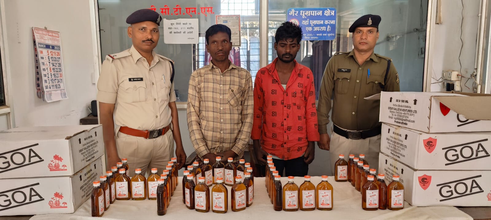 इसी क्रम में 4 मार्च को शराब तस्करी की सूचना मिलने पर उप महानिरीक्षक एवं वरिष्ठ पुलिस अधीक्षक जितेंद्र सिंह मीणा, अतिरिक्त पुलिस अधीक्षक निवेदिता पाॅल के मार्गदर्शन एवं नगर पुलिस अधीक्षक विकास कुमार के पर्यवेक्षण में अलग- अलग टीमें गठित कर उन्हें कार्यवाही हेतु रवाना किया गया था।राष्ट्रीय राजमार्ग 30 के कुदालगांव चौक पर टीम ने नाकाबंदी कर एक व्यक्ति को पकड़ा गया। यह व्यक्ति मोटर साइकिल सीजी 17 केबी 8887 पर तीन कार्टन को पाॅलीथिन से ढककर रखा ला रहा था। व्यक्ति ने अपना नाम नाम लुक्तेश्वर सिन्हा पिता जयराम सिन्हा 27 साल निवासी ग्राम जैबेल थाना करपावंड बताया। लुक्तेश्वर ने पुलिस को बताया कि वह तीनों कार्टन में गोवा व्हिस्की अंग्रेजी शराब को मध्यप्रदेश से जगदलपुर में बेचने के लिए ला रहा था। तीनों कार्टन में अंग्रेजी शराब के 150 पौवे मिले जो 27 बल्क लीटर निकली। लुक्तेश्वर सिन्हा अपने साथी सुदरन मौर्य निवासी तुरपुरा के साथ मिलकर पांच कार्टन गोवा विस्की शराब 45 लीटर कोंडागांव के किसी व्यक्ति के पास से लाने की बात कही। इसकी कुल कीमत 26250 रूपए है। शेष दो कार्टन गोवा विस्की शराब को सुदरन के घर भानपुरी में छुपाने की जानकारी लुक्तेश्वर ने दी, जिसे सुदरन से बरामद कर लिया गया। आरोपियों के खिलाफ कोतवाली थाने में धारा 34 (2) आबकारी एक्ट का अपराध पंजीबद्ध कर किया गया है। तस्करों को पकड़ने में निरीक्षक एमन साहू, उप निरीक्षक अमित सिदार, प्रमोद ठाकुर, सहायक उप निरीक्षक नीलांबर नाग, इंदु शर्मा, प्रधान आरक्षक अनंतराम बघेल व उमेश चंदेल, आरक्षक प्रकाश नायक, युवराज ठाकुर, रवि सरदार, विनोद खेस, भुपेंद्र नेताम एवं गौतम सिन्हा ने योगदान दिया।