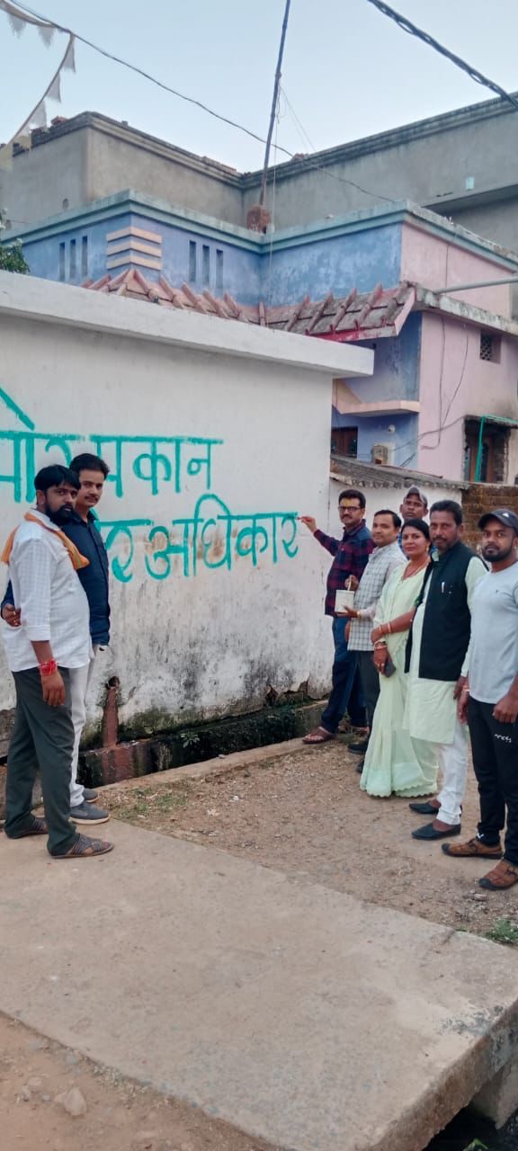 नगर मंडल ने प्रारंभ किया रायपुर आंदोलन चलने के लिए वॉल पेंटिंग -सुरेश गुप्ता जगदलपुर- मोर आवास मोर अधिकार के तहत 15 तारीख को रायपुर में जगदलपुर के हितग्राही जुड़ेंगे- सुरेश गुप्ता विधानसभा घेरने आज जगदलपुर में भाजपा नगर मंडल के द्वारा प्रधानमंत्री आवास के हितग्राहियों के बीच में जाकर जन जागरण अभियान प्रारंभ कर दीवाल में लेखनी कार्य प्रारंभ किया! वॉल पेंटिंग करने के दौरान पात्र हितग्राहियों के बीच में रायपुर जाने हेतु एक उत्सुकता बनी, अपने अधिकार को झुग्गी झोपड़ी में निवासरत परिवार, किराए में रहने वाले परिवार, नजूल की भूमि में रहने वाले परिवार ने अपने अधिकार के लिए रायपुर चलने की तैयारी कर रहे हैं ।