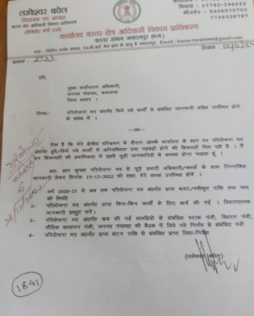 बकावंड बाड़ी विकास कार्यक्रम में हुए भ्रष्टाचार के मामले में विधायक की दखल के बाद भी बकावंड जनपद पंचायत के दोषी कर्मियों और जनप्रतिनिधियों के खिलाफ कोई कार्रवाई नहीं हो पाई है। इससे सवाल उठने लगा है कि वरिष्ठ अधिकारी भी कहीं इस मामले में भागीदार तो नहीं हैं ?छत्तीसगढ़ सरकार ने परंपरागत आदिवासी कृषि प्रणालियों को पुनर्जिवित करने तथा कोदो, कुटकी, कुल्थी, मक्का आदि मिलेट फूड प्रोडक्ट को बढ़ावा देने के लिए बस्तर संभाग में विशेष बाड़ी विकास कार्यक्रम शुरू किया है। इस कार्यक्रम को मुख्यमंत्री भूपेश बघेल द्वारा शुरू की गई नरवा, गरवा, घुरवा, बारी योजना से जोड़ा गया था। इसके लिए आदिम जाति विकास परियोजना को केंद्रीय मद की राशि आवंटित की गई थी। बकावंड जनपद पंचायत के कर्मियों और जनप्रतिनिधियों ने इस खास कार्यक्रम को भी अवैध कमाई का जरिया बना लिया। कार्यक्रम के तहत गरीबी रेखा के नीचे जीवन यापन करने वाले आदिवासी किसानों को उनकी बाड़ियों के विकास तथा उनकी बाड़ियों में सब्जियों व मक्का की फसल लेने और अन्य भूमि पर कोदो, कुटकी, कुल्थी की खेती करने के लिए अनुदान, कृषि उपकरण एवं बीजों के किट्स उपलब्ध कराने का प्रावधान किया गया था। मगर कर्मियों और जनपद पंचायत के कुछ सदस्यों ने मिलीभगत कर चंद किसानों को इक्का दुक्का बीज किट और फावड़ा, कुदाल जैसे मामूली औजार देकर उनके नाम से लाखों रु. का चूना सरकार को लगा दिया। बीज किट आपूर्ति का काम ऐसे जनप्रतिनिधियों को दे दिया गया, जो मेडिकल स्टोर, कॉपी, पुस्तक दुकान, जनरल स्टोर्स आदि के संचालक हैं। कृषि बीज खाद आदि व्यवसाय से उनका दूर दूर का भी नाता नहीं है। जनप्रतिनिधियों ने किसानों को बीज के एक दो पैकेट दे दिए और फर्जी बिल और किसानों से फर्जी पावती लेकर पूरी रकम आहरित कर ली।बस्तर जिले के विभिन्न विकास खंडों की ग्राम पंचायतों में कोदो, कुटकी, मक्का, रागी की खेती के नाम पर जमकर भ्रष्टाचार किया गया है। बस्तर जिले की बकावंड जनपद पंचायत की ग्राम पंचायत कोसमी, उड़ियापाल, मोंगरापाल में फर्जी बिल, पावती आदि जमा कर फर्जी हितग्राहियों के नाम से बड़ी रकम का आहरण कर लिया गया है। कोसमी ग्राम पंचायत में ही 16 हितग्राही आदिवासी किसानों को कोदो, कुटकी, मक्का बीज किट तथा बाड़ी सुधार के नाम से फावड़ा, कुदाल, तगाड़ी जैसे मामूली औजारों का वितरण कर हर हितग्राही के नाम पर 16 हजार 500 रु. का आहरण जनपद पंचायत के कर्मियों और जनप्रतिनिधियों ने कर लिया है। जबकि संबंधित किसानों को जो बीज किट और औजार उपलब्ध कराए गए हैं, उनकी कुल कीमत बमुश्किल आठ – नौ सौ रु. से ज्यादा नहीं है।