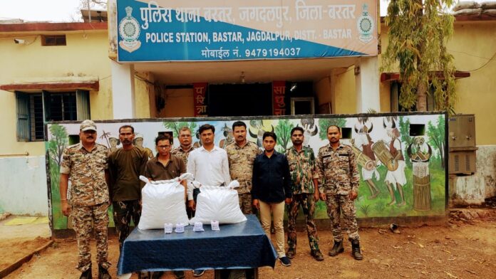 बस्तर स्थानीय पुलिस ने अंतर राज्यीय गांजा तस्कर गिरोह को पकड़ने में सफलता हासिल की है। गिरोह के तीन सदस्य पुलिस के हत्थे चढ़े हैं। आरोपी उत्तरप्रदेश और मध्यप्रदेश के निवासी बताए गए हैं। बस्तर के पुलिस उप महानिरीक्षक एवं जिला पुलिस अधीक्षक जितेंद्र सिंह मीणा एवं अतिरिक्त पुलिस अधीक्षक निवेदिता पॉल के मार्गदर्शन में अपराधी तत्वों तथा नशे का अवैध कारोबार करने वालों के खिलाफ व्यापक अभियान चलाया जा रहा है। बस्तर थाना पुलिस भी लगातार कार्यवाही कर रही है। इसी कड़ी में बस्तर थाना पुलिस को खबर मिली कि कुछ लोग यात्री जगदलपुर से रायपुर जा रही एक यात्री बस में सवार हैं और अपने साथ गांजा की बड़ी खेप रखे हुए हैं। बस्तर थाना के नगर निरीक्षक लीलाधर राठौर ने इसकी सूचना एसडीओ पुलिस घनश्याम कामड़े तथा अन्य वरिष्ठ अफसरों को दी और उनसे मार्गदर्शन लेकर गांजा तस्करों को पकड़ने के लिए जाल बिछाया। बस्तर में पुलिस थाना के सामने टीआई लीलाधर राठौर के नेतृत्व में यात्री बसों और अन्य वाहनों की चेकिंग शुरू की गई। चेकिंग के दौरान रायपुर जा रही यात्री बस में संदेह के आधार पर रोहित शुक्ला उर्फ राजा को पकड़ा गया। उसके पास से चार बैग बरामद किए गए, जिनमें कुल 37 किलो 300 ग्राम गांजा भरा हुआ था। रोहित शुक्ला उत्तरप्रदेश के प्रयागराज जिले के लीलापुर का निवासी है। पुलिस टीम को देख रोहित के दो साथी दूसरी बस में सवार होकर भागने लगे। बस्तर थाना पुलिस ने रास्ते में पड़ने वाले तमाम पुलिस थानों को इसकी सूचना भेज दी। स्थानीय थाने के जवान भाग रहे आरोपियों का पीछा करने लगे। अंततः कांकेर में वहां की पुलिस की मदद से आरोपी सतीश पटेल निवासी लीलापुर खुर्द जिला प्रयागराज और सुधीर सिंह उर्फ बाबा कुर्मी निवासी चुनरी थाना सोहगी जिला रीवा मध्यप्रदेश को पकड़ लिया गया। तीनों आरोपियों के खिलाफ प्रकरण दर्ज कर उन्हें रिमांड पर जेल भेज दिया गया है। गांजा तस्करों को पकड़ने में टीआई लीलाधर राठौर, उप निरीक्षक प्रेमकुमार झा, प्रधान आरक्षक सुनील मनहर, वीरेंद्र यादव, नारायण नरेंद्र कुमार, आरक्षक दुलारू आडिल, गंगाधर निषाद, लिटीराम मौर्य एवं कोतवाली थाना कांकेर के उप निरीक्षक कुलदीप राय तथा अन्य पुलिस कर्मियों का विशेष योगदान रहा।