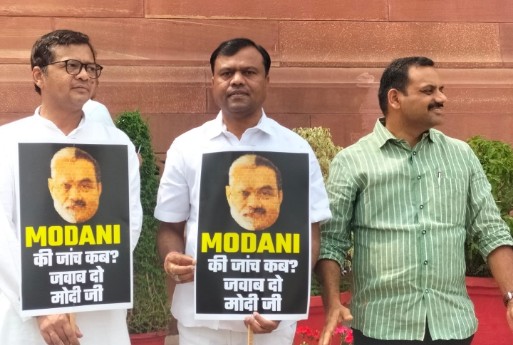बस्तर अडानी समूह पर लगे कथित आर्थिक गड़बड़ियों की जांच जेपीसी से कराए जाने की मांग को लेकर विपक्षी खेमे के सांसद गुरुवार को भी बेहद आक्रामक नजर आए। बस्तर के सांसद दीपक बैज और तमाम विपक्षी सांसदों ने आज संसद के बाहर मोदी सरकार के खिलाफ प्रदर्शन किया।