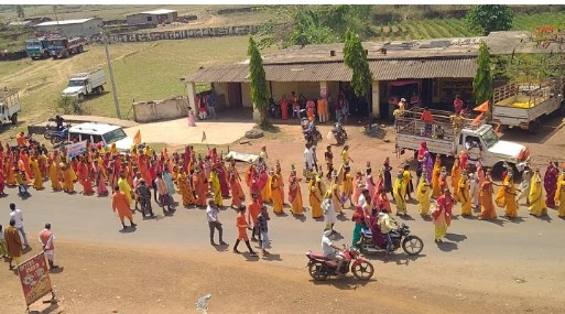 बस्तर – रामनवमी के पवित्र पावन पर्व पर गुरुवार को सम्पूर्ण ब्लॉक लोहण्डीगुड़ा चित्रकोट राम मय हो गया। हजारों की संख्या में महिलायें कलश लेकर शोभायात्रा में शामिल हुए एवं युवाओं ने भगवान राम की शोभायात्रा से पहले बाइक पर जुलूस निकालकर अपने आप को प्रभु की सेना का स्वरूप प्रदान किया। इस जुलूस में इस दौरान भारत माता की जय व जय श्री राम की नारा लगाते हुए पूरा परिवेश गुंजायमान हो उठा। वाहनों पर भगवा ध्वज तथा स्वयं सेवकों के माथे इसी रंग के बंधे पगड़ी से पुरा इलाका भगवा मय हो गया था। डीजे व बाजे गाजे की से निकली भव्य शोभा यात्रा निकली धाकड़ समाज के महिलाएं बधाई के पात्र है – सरपंच बुटकीबाई ग्राम सरपंच बुटकी बाई ने कहा की धाकड़ समाज का पहली बार ऐसा सफल आयोजन आज एकता का परिचय दिया है समाज के सभी सदस्य बधाई के पात्र है।