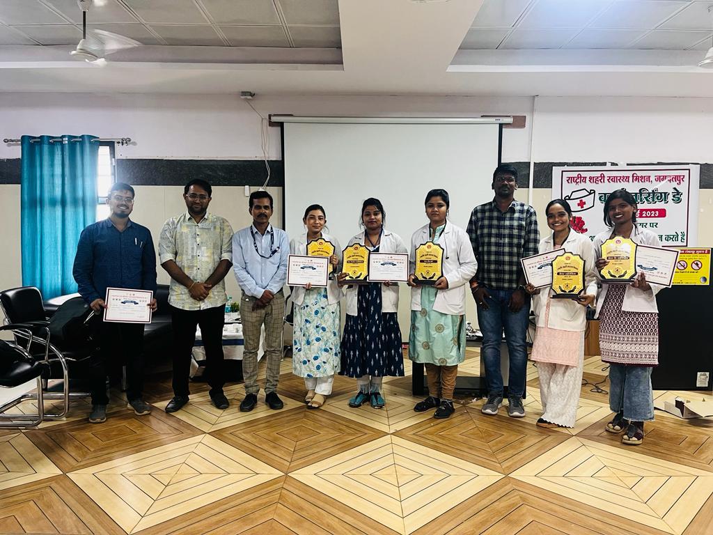 जगदलपुर महारानी अस्पताल जगदलपुर के शहीद गुंडाधुर सभागार में राष्ट्रीय शहरी स्वास्थ्य मिशन जगदलपुर द्वारा “अवर नर्सेस, अवर फ्यूचर ” थीम पर मनाया गया। इस अवसर पर स्वास्थ्य के क्षेत्र में उल्लेखनीय योगदान देने वाली सेवा की प्रतिमूर्ति नर्सेस को अवार्ड से नवाजा गया। शहरी कार्यक्रम प्रबंधक संजीव दुबे ने बताया की नर्सों के योगदान को याद करने और उनके प्रति सम्मान व्यक्त करते के लिए अंतरराष्ट्रीय नर्स दिवस मनाया जाता है। इसी तारतम्य में नर्सों द्वारा दी जा रही उत्कृष्ठ सेवाओं के लिए उन्हें प्रशस्ति पत्र व शील्ड संयुक्त संचालक स्वास्थ्य सेवाएं बस्तर संभाग द्वारा प्रदान की गई। सर्वश्रेष्ठ स्क्रीनिंग के लिए शिवानी नायक सीएचओ अघनपुर, बेस्ट राजेनिंग एलेशा जॉयल, बेस्ट वेलनेस एक्टिविटी के लिए स्टॉफ नर्स सुमन मौर्य, सर्वश्रेष्ठ अपकिप के लिए स्टॉफ नर्स वर्षा नामदेव, बेस्ट टीम वर्क के लिए यूएचडब्लूसी भैरमदेव वार्ड को पुरस्कृत किया गया। इस मौके पर मुख्य रूप से संयुक्त संचालक स्वास्थ्य डॉ. डी. राजन, सीपीएम संजीव दुबे, एनसीडी से बी. संतोष महेश मिश्रा, अमित सिंह, एचडब्ल्यूसी सलाहकार अनिमेष पांडा, प्रशांत श्रीवास्तव, नरेश मरकाम व अन्य अधिकारी और कर्मचारी उपस्थित थे। सीएमएचओ डॉ. आरके चतुर्वेदी ने सभी को नर्स दिवस की बधाई देते हुए कहा कि एक मरीज के ठीक होने में जितना योगदान डॉक्टर का होता है, उतना ही योगदान एक नर्स का भी होता है।