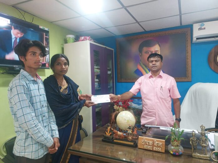आज सांसद दीपक बैज ने आड़ावाल निवासी श्रीमती विनीता भद्र चौधरी जिनके पति का बीते दिनों एक्सीडेंट हो गया था इस कारण उन्हें पति के इलाज व बच्चों की पढ़ाई के लिए दिक्कतों का सामना करना पड़ रहा था। श्रीमती विनीता ने सांसद बैज को अपनी व्यथा सुनाई उसके बाद सांसद बैज ने मुख्यमंत्री स्वेच्छा अनुदान मद से एक लाख रुपए की आर्थिक सहायता राशि प्रदान की जिसके बाद श्रीमती विनीता ने मुख्यमंत्री भूपेश बघेल व सांसद दीपक बैज का धन्यवाद ज्ञापित कर आभार व्यक्त किया।