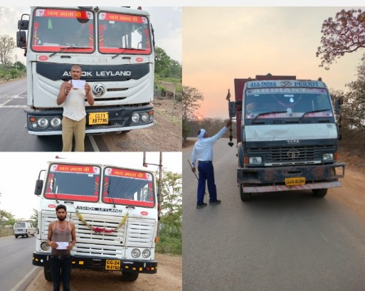 - बिना तिरपाल ढंके रेत ले जाने वाले वाहनों पर किया गया कार्यवाही।