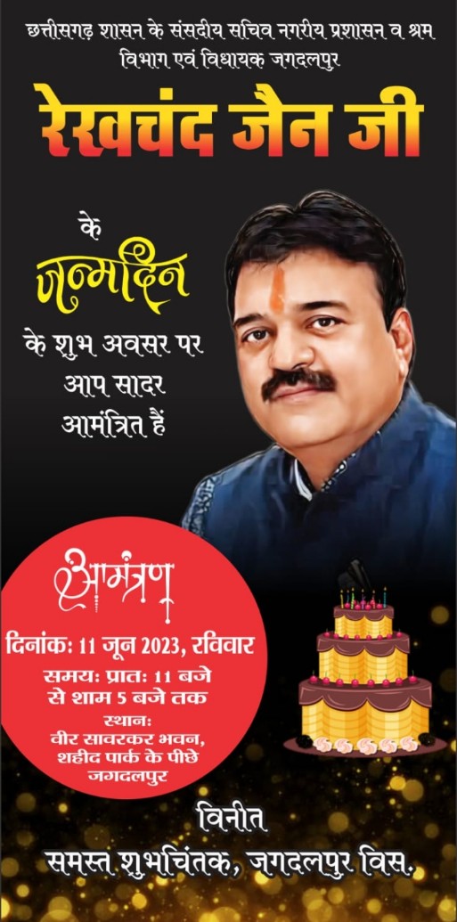अपने जन्मदिन पर रेखचंद जैन अपनी धर्मपत्नी संगीता जैन और बच्चों के साथ सबसे पहले कुल देवी की पूजा करेंगे। इसके बाद वे बस्तर की आराध्या मां दंतेश्वरी मंदिर में पूजा अर्चना कर माता का आशीर्वाद लेंगे। फिर वे सभी धर्मों के प्रार्थना स्थलों पर जाकर प्रार्थना करेंगे और दुआएं मांगेंगे। वृद्धाश्रम, अनाथ आश्रम में बड़े बुजुर्गों और बच्चों के संग अपने जन्मदिन की खुशियां शेयर करेंगे। गौशाला, गोठान में जाकर गौमाता को चारा, गुड़ आदि खिलाएंगे। उसके बाद कांग्रेस कार्यकर्त्ताओं और शुभचिंतकों द्वारा 11 जून रविवार को जगदलपुर के शहीद पार्क के पीछे स्थित वीर सावरकर भवन में आयोजित कार्यक्रम में जैन सपरिवार भाग लेंगे। सुबह 11 बजे से शाम 5 बजे तक विविध आयोजन होंगे। इस दौरान जैन दंपत्ति के हाथों से जरूरतमंदों को जीवनोपयोगी वस्तुएं वितरित की जाएंगी।