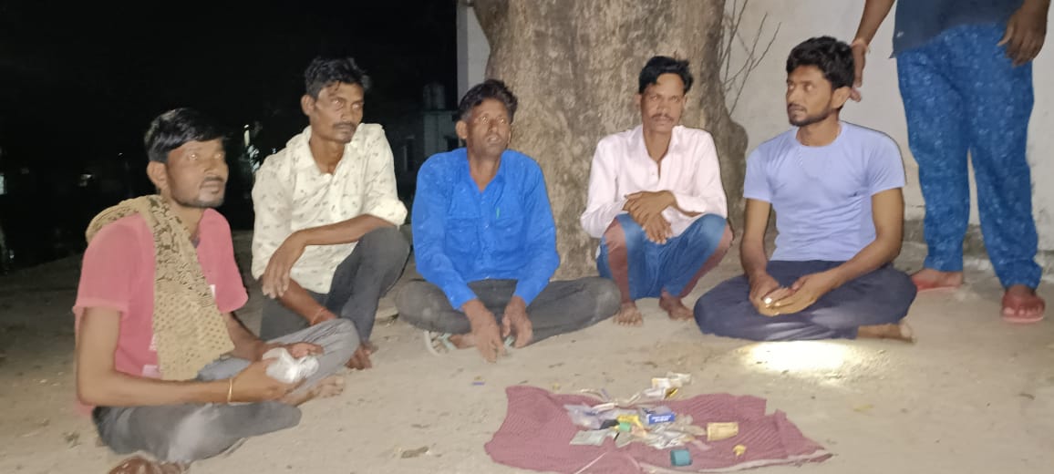 05 जुआडियानो से 5180 रूपये व 52 पत्ती ताश जप्तऽ थाना गुण्डरदेही में धारा 3 (2) छ.ग. जुआ प्रतिषेध अधि. 2022 के तहत अपराध कायम कर की जा रही विवेचना। पुलिस अधीक्षक महोदय जितेन्द्र कुमार यादव के निर्देशानुसार, अतिरिक्त पुलिस अधीक्षक महोदय हरीश राठौर के मार्गदर्शन मे पुलिस अनुविभागीय अधिकारी अनुभाग गुण्डरदेही श्रीमती गीता वाधवानी के पर्यवेक्षण एवं निरीक्षक वीणा यादव थाना प्रभारी गुण्डरदेही के नेतृत्व मे अवैध जुआ सट्टा पर लगाम लगाने थाना गुण्डरदेही क्षेत्र मे लगातार किया जा रहा है। कार्यवाही। दिनांक 10.06.2023 को देहात पेट्रोलिंग जुर्म जरायम पतासाजी पर ग्राम ओटेबंद की ओर रवाना हुआ था, जरिये मुखबीर सूचना मिला कि तालाब के पास आम जगह ग्राम ओटेबंध के पास आम जगह पर कुछ जुआडियान रूपये पैसे का दांव लगाकर 52 पत्ती ताश से जुआ खेला रहा है कि मुखबीर की सूचना की तस्दीक हेतु हमराह स्टाफ एवं गवाह के रवाना होकर घेराबंदी कर रेड किया तो 05 व्यक्ति 52 पत्ती ताश से रूपये पैसे का दांव लगाकर जुआ खेलते रंगे हाथों पकडा गया, नाम पता पुछने पर अपना नाम 01.दानेश्वर साहू पिता टेकराम साहू उम्र 28 साल 02.श्रवण कुमार पिता प्यारी लाल साहू उम्र 38 साल 03. धमेन्द्र साहू पिता घनश्याम साहू उम्र्र 34 साल 04.युगल किशोर पिता शिवनारायण उम्र 32 साल 05.सुरेश यादव पिता नरोत्तम यादव उम्र 33 साल साकिनान ओटेबंद थाना गुण्डरदेही जिला बालोद का रहने वाला बताया जिसके पास से 52 पत्ती ताश एवं 5180 रूपये नगदी जप्त कर अपराध क्रमांक 239/23 धारा 3 (2) छ.ग. जुआ प्रतिषेध अधि. कायम कर विवेचना मे लिया गया। कार्यवाही मे निरीक्षण वीणा यादव, प्र.आर. विरेन्द्र साहू, आर. दमन वर्मा, आर. पंकज तारम, आर. पुकेश साहू, आर. राकेश सलाम, आर. सुमित पटेल, आर.ललित कदम, आर.सुनिल कुमार का योगदान रहा। कार्यवाही मे निरीक्षण वीणा यादव, सउनि अरविंद साहू, प्र.आर. 535 विरेन्द्र साहू, आर. दमन वर्मा, आर. पंकज तारम, आर. पुकेश साहू , आर. राकेश सलाम, आर. कंवल कलामे का योगदान रहा।