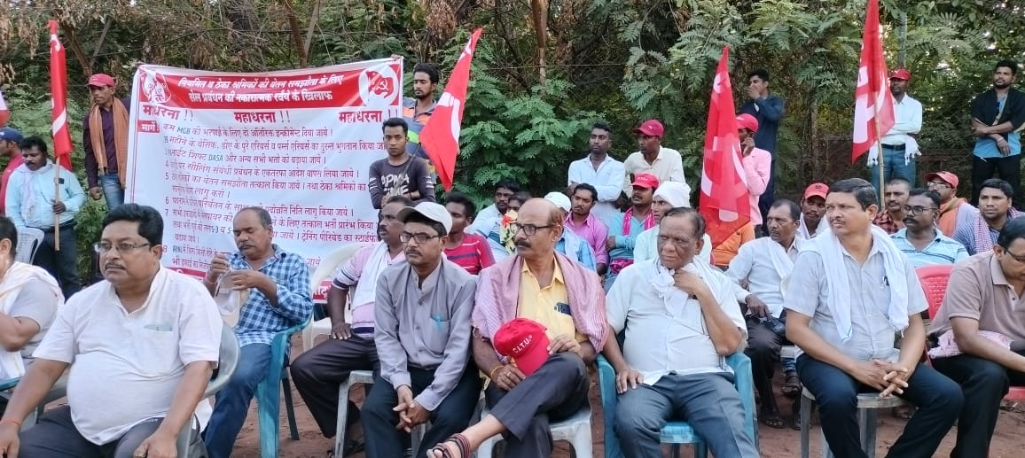 दल्लीराजहरा स्टील वर्कर्स फेडरेशन ऑफ इंडिया (सीटू) के आह्वान पर सेल कर्मियों की वेज रिवीजन एवं लंबित मांगों को लेकर आज स्थानीय हिंदुस्तान स्टील एंप्लाइज यूनियन सीटू राजहरा के नेतृत्व में खदान कर्मचारियों ने माइंस ऑफिस के समक्ष विशाल महाधरना किया । उल्लेखनीय है कि सेल के नियमित कर्मचारियों के आधे अधूरे वेतन समझौते और ठेका मजदूरों की वेतन बढ़ोतरी पर प्रबंधन के नकारात्मक रवैए के खिलाफ खदान सहित पूरे सेल के कर्मचारी बेहद आक्रोशित है। सेल की तमाम इकाइयों में बिगत एक वर्ष से अलग-अलग प्रकार से धरना प्रदर्शन के माध्यम से यह प्रयास किया गया कि प्रबंधन जल्द से जल्द एनजेसीएस की बैठक बुलाकर लंबित मुद्दों का निराकरण करे, लेकिन सेल प्रबंधन अपने अड़ियल रवैया पर डटा हुआ है । लगभग एक वर्ष से इन मुद्दों पर कोई पहल प्रबंधन की ओर से नहीं की जा रही है। प्रबंधन के इस रवैया से क्षुब्ध, स्टील वर्कर्स फेडरेशन आफ इंडिया ( सीटू) ने अब ठान लिया है कि सेल में सिलसिलेवार संघर्ष को तेज करते हुए प्रबंधन से आर-पार की लड़ाई करनी होगी ।