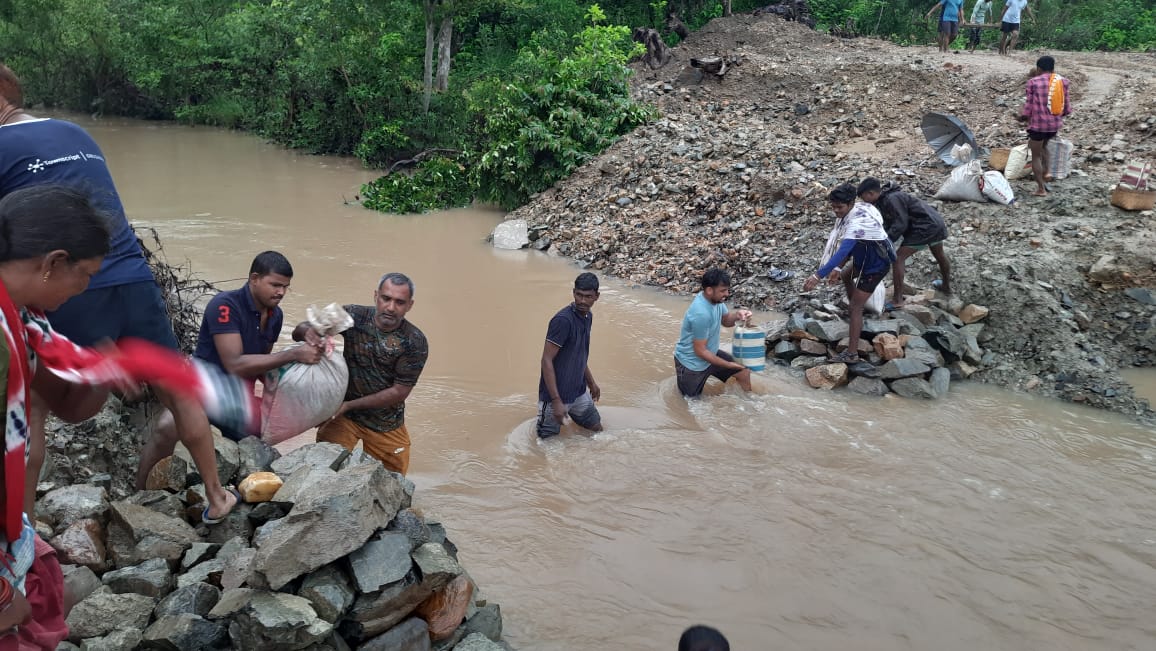 - जवानों ने लकड़ी और पत्थरों से ग्रामीणों के लिए बना दिया पुल