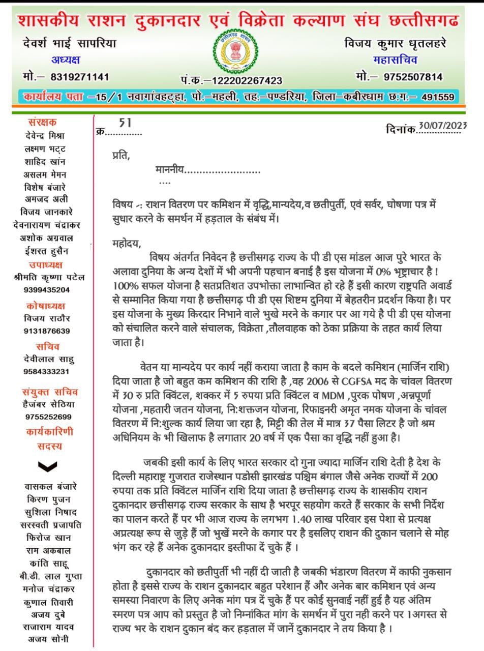 जगदलपुर कमीशन व मार्जिन राशि में वृद्धि, मानदेय देने, सर्वर की व्यवस्था दुरुस्त करने तथा कुछ अन्य मांगों को लेकर बस्तर संभाग समेत समूचे छत्तीसगढ़ के पीडीएस राशन दुकानदार एवं विक्रेता 1 अगस्त से राशन वितरण बंद कर हड़ताल पर चले गए हैं। पहले ही दिन से उपभोक्ताओं को राशन के लिए भटकते देखा गया।छत्तीसगढ़ की सार्वजनिक राशन वितरण प्रणाली की पूरे देश में सराहना होती है। यहां का पीडीएस सिस्टम अन्य राज्यों के लिए मॉडल बन गया है, लेकिन इस सिस्टम से जुड़े दुकानदार, वितरक, तौलईया आदि शोषण का शिकार हैं। उन्हें मेहनत के अनुरूप कमीशन नहीं मिलता और न ही पर्याप्त मार्जिन राशि मिलती है। ट्रांसपोर्टिंग, लोडिंग, अनलोडिंग और वितरण के दौरान चावल, गेहूं, शक्कर, मिट्टीतेल आदि का बड़ी मात्रा में नुकसान होता है, जिसकी भरपाई भी राशन दुकानदारों को ही करनी पड़ती है। कमीशन के नाम पर दुकानदारों को चावल में महज 30 रुपए प्रति क्विंटल दिया जाता है। वहीं पोषण आहार, मध्यान्ह भोजन, निशक्तजन आदि के राशन वितरण में कोई कमीशन नहीं है। शासकीय राशन दुकानदार एवं विक्रेता कल्याण संघ छत्तीसगढ़ के पदाधिकारियों का कहना है कि झारखंड, पश्चिम बंगाल, ओड़िशा आदि राज्यों में मार्जिन और कमीशन राशि बहुत ज्यादा दी जाती है। लोडिंग अनलोडिंग, ट्रांसपोर्टिंग और वितरण के दौरान शक्कर, चावल, गेहूं व मिट्टीतेल के क्षरण की भरपाई हेतु केंद्र सरकार पर्याप्त राशि राज्य सरकार को देती है, लेकिन यह राशि राज्य के दुकानदारों को नहीं मिल पाती। ऐसे में सार्वजनिक वितरण प्रणाली की दुकानों का संचालन दुकानदारों और विक्रेताओं के लिए घाटे का सौदा साबित हो रहा है। दुकानदारों और विक्रेताओं ने कमीशन व मार्जिन राशि बढ़ाने, मानदेय देने, सर्वर को सुचारु बनाए रखने आदि मांगों को लेकर आंदोलन शुरू किया है। इसके तहत 1 से 5 अगस्त तक दुकानें बंद रखी जा रही हैं। इसके बाद 6 अगस्त से अनिश्चित कालीन हड़ताल शुरू कर दी जाएगी।