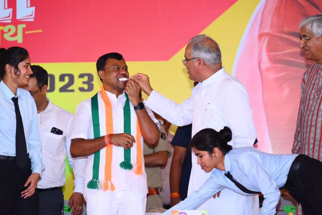 अम्बिकापुर। मुख्यमंत्री भूपेश बघेल के जनमदिन की धूम शुरू हो गई है। आज यहां युवाओं से भेंट मुलाकात कार्यक्रम के दौरान प्रदेश कांग्रेस अध्यक्ष सांसद दीपक बैज ने मुख्यमंत्री बघेल को जन्मदिन की अग्रिम बधाई दी तो माहौल भूपेश जन्मोत्सव में बदल गया। युवाओं ने भूपेश कका को जन्मदिन की बधाई के साथ फिर से सरकार बनाने की शुभकामनाएं दीं। मंच पर केक काटा गया और मुख्यमंत्री ने प्रदेश कांग्रेस के कमांडर सांसद दीपक बैज और युवाओं को केक खिलाकर उनका मुंह मीठा कराया।