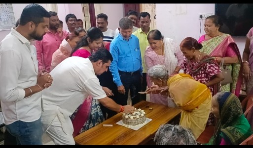 - वृद्धाश्रम में बुजुर्गों को भेंट किए फल काटा गया केक
