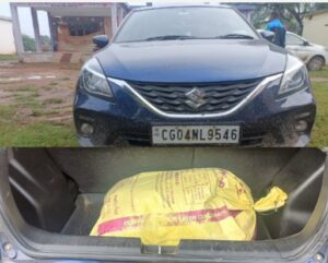कुछ समय बाद मुखबीर के बतायेनुसार एक नीले रंग की मारुति सुजुकी बेलोरो कार कमांक CG-04- NL 9546 आया जिसे इसारा कर रुकवाया गया जिसे नाम पता पूछने पर गोलमोल जवाब देने लगा तथा कड़ाई से पूछताछ करने पर वाहन चला रहा व्यक्ति अपना नाम बाबू सरकार पिता हरिलाल सरकार जाति नमोशूद उम्र 48 वर्ष निवासी माना कैम्प वार्ड नम्बर 15 थाना माना जिला रायपुर (छ0ग0) तथा वाहन में बैठा व्यक्ति अपना नाम गोपाल मण्डल पिता सुकुमार मण्डल उम्र 28 साल जाति नमोजूद निवासी माना कैम्प वार्ड नम्बर 15वाना माना जिला रायपुर (छ०ग०) का रहने वाला बताये जिनके वाहन कार की तलाशी लेने पर CG-04- NL-9546 की तलाशी लेने पर 12 पैकेट खाकी रंग के टैप से लिपटा हुआ मादक पदार्थ गांजा कुल वजनी 21,640 किलोग्राम कीमती 2.16,400 रुपये एवं घटना में प्रयुक्त वाहन को जप्त कर आरोपीयों के विरुध्द धारा 20 (ख) एनडीपीएस कायम कर विवेचना कार्यवाही में लिया गया तथा आरोपीयों को न्यायिक रिमाण्ड पर जेल दाखिल किया गया। उक्त प्रकरण में पुलिस थाना पुरूर प्रभारी निरीक्षक शिशुपाल सिन्हा, ‘सउनि रूपेश्वर राम भगत, आरक्षक लिखन साहू, किशोर साहू, संदीप यादव, सुरेश पटेल, उमाशंकर जारके, कुलदीप नागवंशी, रुपेश चौरे सायबर सेल प्रभारी उप निरीक्षक जोगेन्द्र साहू आरक्षक मिथलेश यादव व उनकी टीम की सराहनीय भूमिका रही।