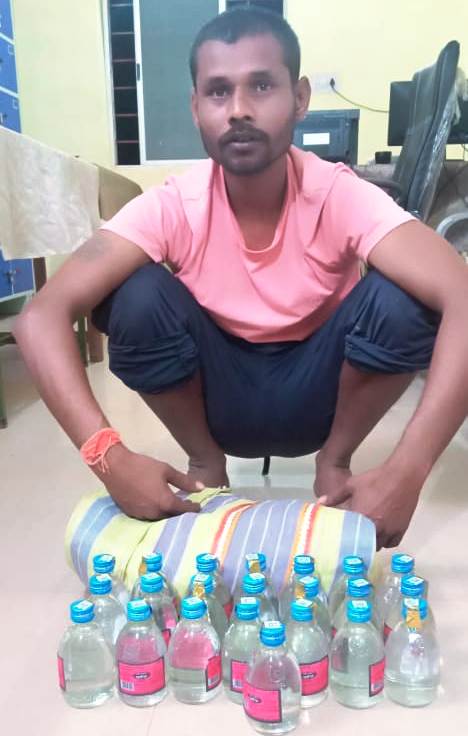 आरोपी के विरूद्ध अपराध धारा 34 ( 1 ) क, ख आबकारी एक्ट के तहत कार्यवाही किया गया है।