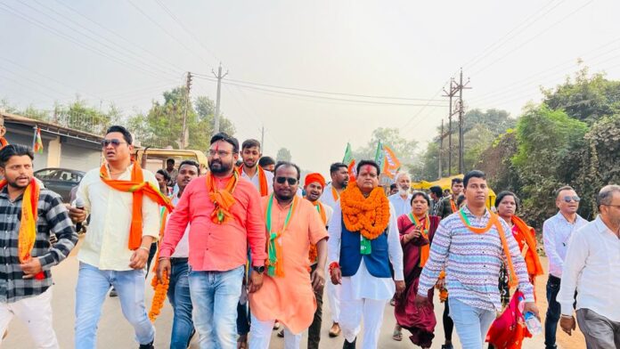नहीं केंद्रीय विद्यालय खुला न 100 बिस्तर अस्पताल बायपास रोड के अभाव में सड़क दुर्घटनाओं में लोग अपनी जान गवा रहे हैं कांग्रेस के लोग केवल गली मोहल्ले में शराब बिक्री एवं नशाखोरी एवं सट्टा जैसे कार्यों में सलिप्त हैं विकास के नाम पर शहर किस बस्तियों की सड़क जर्जर हो चुकी हैं इस वजह से परिवर्तन की लहर स्पष्ट दिखाई दे रही है आज की रैली में युवा मोर्चा महिला मोर्चा अजा मोर्चा एवं सभी मोर्चा एवं प्रकोष्ठ के पदाधिकारी के साथ पार्षद गण एवं जिला व प्रदेश के पदाधिकारी एवं के सैकड़ो की संख्या में भाजपा कार्यकर्ता उपस्थित थे जनसंपर्क अभियान शहीद चौक वार्ड नंबर 14 से शुरू होकर अटल चौक चिखलाकसा में संपन्न हुआl