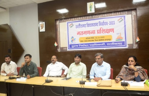 जगदलपुर छत्तीसगढ़ विधानसभा निर्वाचन -2023 के तहत 3 दिसंबर को होने वाली मतगणना के लिए चार जिलों बस्तर, सुकमा, दंतेवाड़ा और बीजापुर का प्रशिक्षण जिला कार्यालय के प्रेरणा सभाकक्ष में हुआ। राज्य निर्वाचन कार्यालय से पहुंचे मास्टर ट्रेनर्स द्वारा मतगणना के पूर्व की तैयारी, मानव संसाधन व आवश्यक संसाधन की व्यवस्था, डाक मतपत्रों की गणना, ईव्हीएम मशीन से मतगणना की व्यवस्था, मतगणना साफ्टवेयर, इंडेक्स कार्ड भरने की व्यवस्था एवं अन्य महत्वपूर्ण विषयों पर जानकारी दी गई। मतगणना दिवस के लिए स्ट्रांग रूम और मतगणना कक्ष में बरती जाने वाली सावधानियों एवं नियमों के पालन की विस्तृत जानकारी दी गई। डाक मतपत्रों व कंट्रोल यूनिट की गणना की संपूर्ण प्रक्रिया समझाई गई। इस दौरान जिला पंचायत बस्तर के सीईओ प्रकाश सर्वे, अपर कलेक्टर सीपी बघेल, नगर निगम आयुक्त हरेश मंडावी, उप जिला निर्वाचन अधिकारी हितेश बघेल, मास्टर ट्रेनर रूपेश वर्मा, रश्मि वर्मा, सुनील शर्मा सहित चारों जिलों के उप जिला निर्वाचन अधिकारी, सभी रिटर्निंग अधिकारी, सहायक रिटर्निंग अधिकारी, सुरक्षा के लिए पुलिस अधिकारी, एनआईसी के सूचना अधिकारी और जिलों के प्रशिक्षक उपस्थित थे।