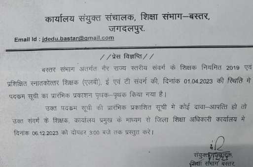 जगदलपुर कलेक्टर विजय दयाराम के. के निर्देश पर बस्तर जिले के स्कूली बच्चों को जाति प्रमाण पत्र जारी करने में बेहतर उपलब्धि हासिल हुई है। शैक्षणिक सत्र 2023- 24 में अब तक साढ़े 8 हजार से अधिक स्कूली बच्चों को जाति प्रमाण पत्र जारी किए जा चुके हैं। यही नहीं 17 से 24 नवंबर तक एक सप्ताह के दौरान ही करीब 411 स्कूली बच्चों को जाति प्रमाण पत्र प्रदान किए गए। जिले में स्कूली बच्चों को जाति प्रमाण पत्र प्रदाय के लिए राजस्व, स्कूल शिक्षा और पंचायत एवं ग्रामीण विकास विभाग अभियान को सफलता पूर्वक चला रहे हैं। बस्तर ब्लॉक में सर्वाधिक 2217 स्कूली बच्चों को जाति प्रमाण पत्र जारी किए गए हैं।