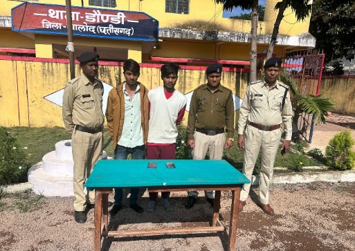 डौण्डी पुलिस अधीक्षक जिला बालोद डॉ. जितेन्द्र कुमार यादव से फरार आरोपियों की पतासाजी कर गिरफ्तारी करने का आदेश प्राप्त हुआ था थाना डौण्डी के अपराध कमांक 67 / 2022 धारा 341, 392, 506 भादवि 25, 27 आर्म्स एक्ट के फरार आरोपीगण 01. अमन खान उर्फ अमन रक्सेल पिता मजनु अहमद खान उम्र 20 साल साकिन कातुलबोड़ शिव मंदिर के पास नेपाली मोहल्ला चौकी स्मृति नगर थाना सुपेला जिला दुर्ग एवं 02. आरोपी नवीन सोनी उर्फ आशु सोनी उर्फ नेपाली पिता कार्तिक सोनी उम्र 19 साल निवासी खुर्सीपार वार्ड क. 48 एकता नगर थाना खुर्सीपार जिला दुर्ग का पतासाजी अतिरिक्त पुलिस अधीक्षक जिला बालोद सुशील कुमार नायक एवं नगर पुलिस अधीक्षक दल्लीराजहरा राजेश बांगड़े के मार्गदर्शन में तकनीकी साक्ष्य से लगातार पतासाजी की जा रही थी तकनीकी साक्ष्य के आधार पर पता चला कि उक्त दोनों फरार आरोपीगण अपने अपने सकुनत भिलाई कुर्सीपार में है तत्काल मौके टीम गठित का गिरफ्तारी हेतु रवाना किया गया ।