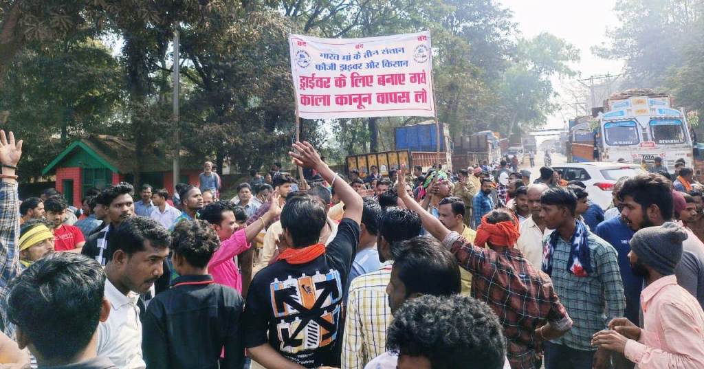 केंद्र सरकार के निर्णय को बताया काला कानून जगदलपुर केंद्र सरकार द्वारा परिवहन संबंधी बनाए गए कानून के विरोध में सड़क के शहंशाह कहे जाने वाले वाहन चालक सड़क पर उतर आए हैं। ट्रक, मिनी ट्रक और दूसरे वाहनों के ड्राइवर 1 जनवरी को क्लच, ब्रेक से पैर और स्टेयरिंग से हाथ हटाकर सड़क पर कूद पड़े। आज वेयर हाउस कुम्हारपारा के पास वाहन चालक सांकेतिक धरना प्रदर्शन करते हुए अपने -अपने वाहनों की स्टेयरिंग छोड़कर जमीन पर उतर आए। दूसरे अन्य व्यवसाय से जुड़े वाहन चालकों ने भी केंद्रीय मंत्री अमित शाह के निर्णय को अलोकतांत्रिक बताया है।