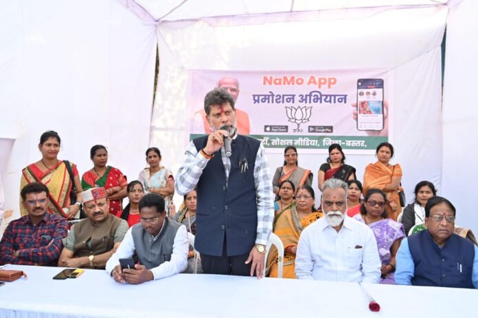 जगदलपुर भाजपा सोशल मीडिया विभाग बस्तर द्वारा बुधवार को जगदलपुर के शहीद पार्क के पास स्थित चौपाटी में नमो ऐप प्रमोशन अभियान का आयोजन किया गया। कार्यक्रम में भाजपा छत्तीसगढ़ के प्रदेश अध्यक्ष एवं जगदलपुर विधायक किरण सिंह देव शामिल हुए। बस्तर जिला भाजपा अध्यक्ष रूपसिंह मंडावी,भाजपा प्रदेश प्रवक्ता संजय पांडेय, प्रदेश कार्यसमिति सदस्य विद्याशरण तिवारी, भाजपा सोशल मीडिया विभाग बस्तर के जिला संयोजक तेजपाल शर्मा ने इस दौरान चौपाटी की दुकानों में जाकर नमो एप इंस्टाल करने का आग्रह व्यापारियों व ग्राहकों से किया। प्रदेश भाजपा अध्यक्ष किरण सिंह देव ने नमो एप के लाभ बताते हुए कहा कि नमो एप से केंद्र की नरेंद्र मोदी सरकार की योजनाओं की जानकारी जनता तक आसानी से पहुंच जाती है। देश के प्रत्येक व्यक्ति को नमो एप के माध्यम से केंद्र सरकार द्वारा संचालित योजनाओं की जानकारी प्राप्त कर उनका लाभ लेना चाहिए।