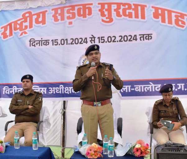 आज दिनांक 15.01.2024 को जिले में 34 वां राष्ट्रीय सड़क सुरक्षा माह का शुभारंभ पुलिस अधीक्षक महोदय बालोद डॉ. जितेन्द्र कुमार यादव द्वारा किया गया है। सड़क परिवहन एवं राजमार्ग मंत्रालय भारत शासन द्वारा जारी गाइडलाइन के अनुसार जिलों में दिनांक 15.01.2024 से 15.02.2024 तक यातायात सड़क सुरक्षा माह का आयोजन किया जाना है। सड़क सुरक्षा माह के प्रथम दिवस आज दिनांक 15.01.2024 को पुलिस अधीक्षक महोदय बालोद डॉ. जितेन्द्र कुमार यादव द्वारा यातायात माह का शुभारंभ किया गया है|