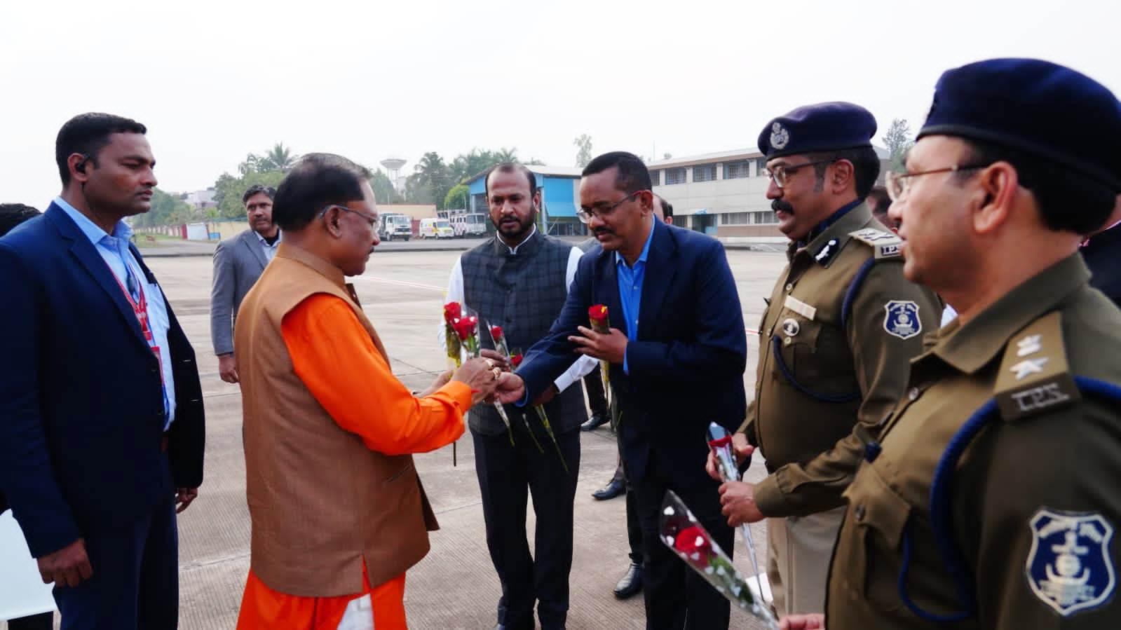 जनप्रतिनिधियों व अफसरों ने एयरपोर्ट पर किया स्वागत जगदलपुर मुख्यमंत्री विष्णुदेव साय दो दिवसीय बस्तर प्रवास पर आज जगदलपुर पहुंचे। जगदलपुर एयरपोर्ट पर जनप्रतिनिधियों और अधिकारियों ने उनका भव्य स्वागत किया। मुख्यमंत्री श्री साय के साथ वनमंत्री केदार कश्यप और वन विकास निगम के पूर्व अध्यक्ष श्रीनिवास मद्दी भी आए। एयरपोर्ट में विधायक चित्रकोट विनायक गोयल, महापौर सफीरा साहू, जिला पंचायत अध्यक्ष वेदवती कश्यप, पूर्व सांसद दिनेश कश्यप, पूर्व विधायक संतोष बाफना, बैदूराम कश्यप, सुभाऊ कश्यप, राजाराम तोड़ेम, बस्तर कमिश्नर श्याम धावड़े, आईजी सुंदरराज पी., कलेक्टर विजय दयाराम के., एसपी शशि मोहन सिंह सहित अन्य वरिष्ठ अधिकारियों तथा जनप्रतिनिधियों ने मुख्यमंत्री का स्वागत किया।