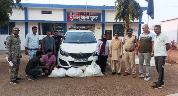 दल्लीराजहरा दिनांक 07.02.2024 को सूचना मिलने पर एक सफेद रंग की महेंद्र मराजो वाहन क्रमांक UP-32-KZ-8648 जिसमें तीन व्यक्ति सवार है जो अपने वाहन में अवैध मादक पदार्थ गांजा छिपाकर रखे हुए हैं जिसे कोण्डागांव की ओर से केशकाल कांकेर के रास्ते रायपुर की ओर लेकर जा रहे थे , इसकी सूचना मिलने पर ग्राम जगतरा दुर्गा मंदिर के पास एन एच 30 मार्ग के पास आने जाने वाले वाहनों की चेकिंग कार्यवाही की जा रही थी, कुछ समय बाद मुखबीर के बतायेनुसार एक सफेद रंग की महेंद्र मराजो वाहन क्रमांक UP-32-KZ-8648 आया । जिसे ईशारा कर रूकवाया गया। वाहन में सवार आरोपीगण वाहन को रोककर गाडी से उतरकर भागने का प्रयास कर रहे थे। जिसे पुलिस द्वारा घेराबंदी कर पकडा गया। जिससे नाम पता पूछने पर अपना नाम (1) विकास गुप्ता पिता प्रसाद गुप्ता उम्र 24 वर्ष निवासी खुटारखास थाना खुटारखास जिला शाहजहानपुर (उ०प्र०) (2) रवि कश्यप पिता स्व० अशोक कुमार कश्यप उम्र 27 वर्ष निवासी बाराबंकी के पास लखनउ थाना नवाबगंज जिला बाराबंकी (उ०प्र०) (3) आंचल सक्सेना पिता दिनेश कुमार सक्सेना उम्र 30 वर्ष निवासी डॉ० सागर क्लिनिक के पास राजाजीपुरम थाना तालकटोरा जिला लखनउ (उ०प्र०) का रहने वाले बताये। जिनके वाहन महेंद्र मराजो वाहन क्रमांक UP-32-KZ-8648 की तलाशी लेने पर वाहन की पिछली सीट के नीचे भूरे रंग के सेलो टेप से लिपटा हुआ 10 पैकेट अवैध मादक पदार्थ गांजा कुल वजनी 60 किलोग्राम कीमती 6,00,000/ रूपये एवं घटना में प्रयुक्त वाहन कीमती 8,00,000/रूपयो, आरोपियो का मोबाईल कीमती 11,000/रू व नगदी सहित कुल जुमला 14,11,480 रूपये को जप्त कर आरोपी के विरूध्द धारा 20 (ख) एनडीपीएस कायम कर विवेचना कार्यवाही में लिया गया। तथा आरोपीगणो को न्यायिक रिमाण्ड पर जेल दाखिल किया गया।